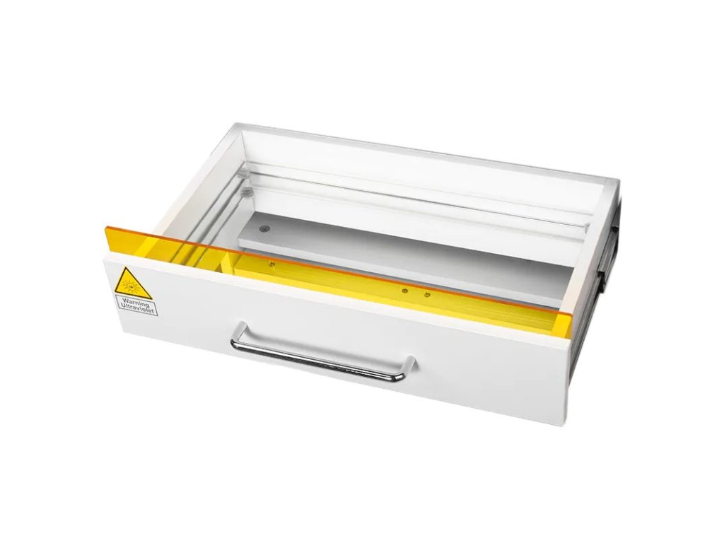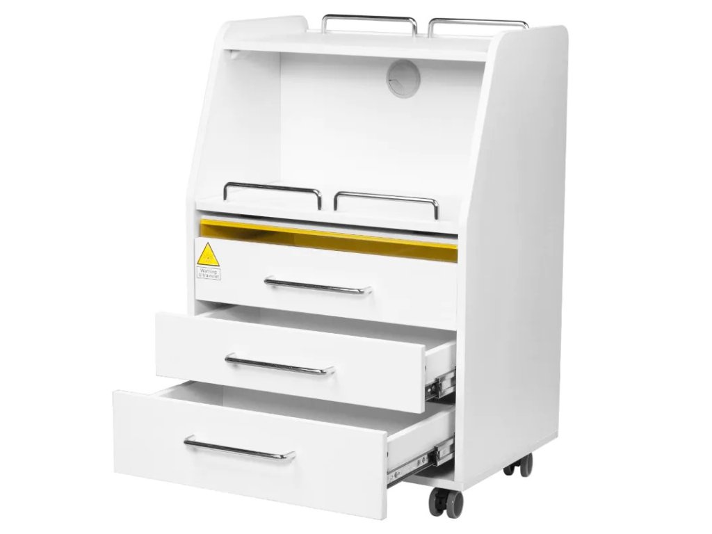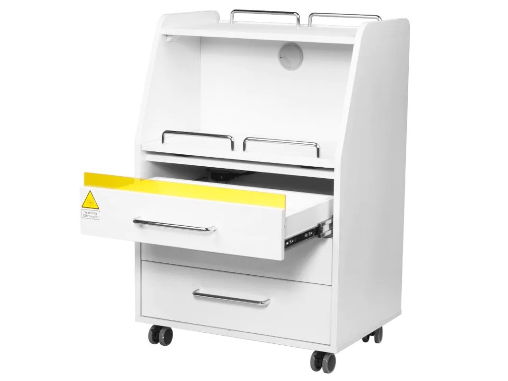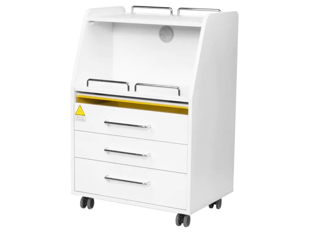 Podiatrická skříňka na kolečkách s UV-C lampou pro lepší sterilitu nástrojů.
