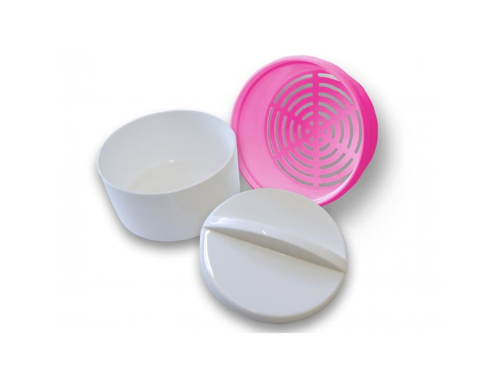 Táto dóza sa skladá z troch častí – misky, ponorného sitka a viečka, a je k dostaniu v niekoľkých farebných prevedeniach.
