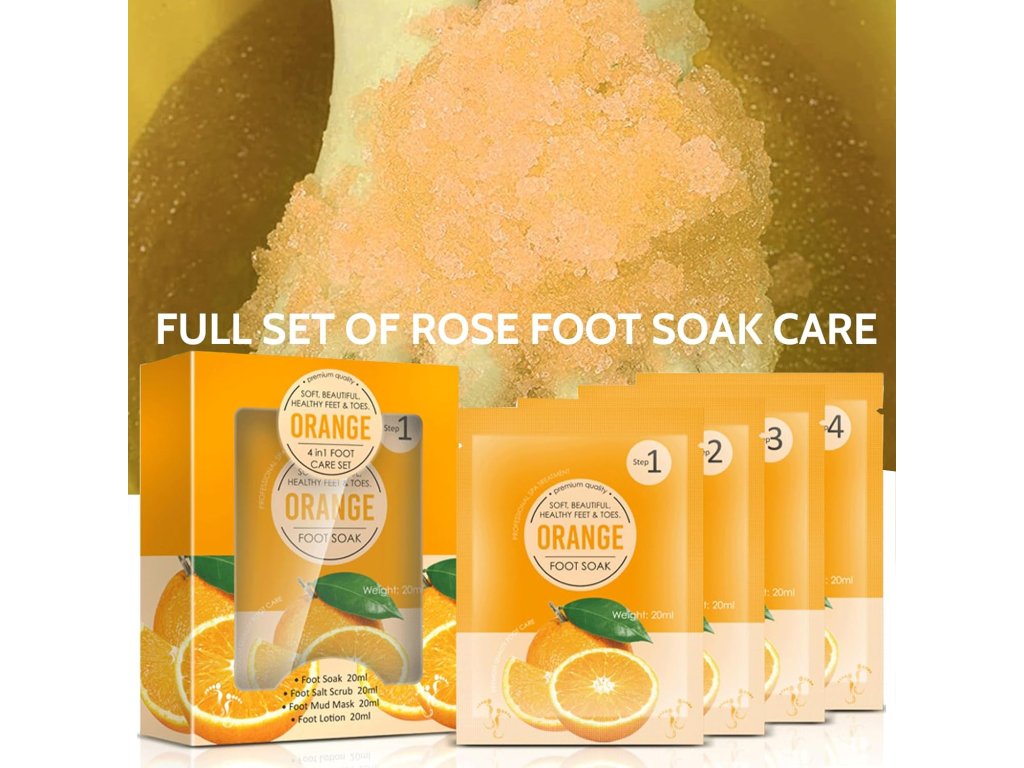 Krok č. 1: Naplňte vaničku na nohy cca 4-5 litrami teplej vody (cca 38-43 oC) a vložte nohy do kúpeľa. Do vody nasypte (obsah vrecka č. 1) a dobre premiešajte. Voda sa zmení na gél. Nohy namočte na 3–5 minút. Gél jemne vmasírujte do nôh, aby ste odstránili unavenú a matnú pokožku.