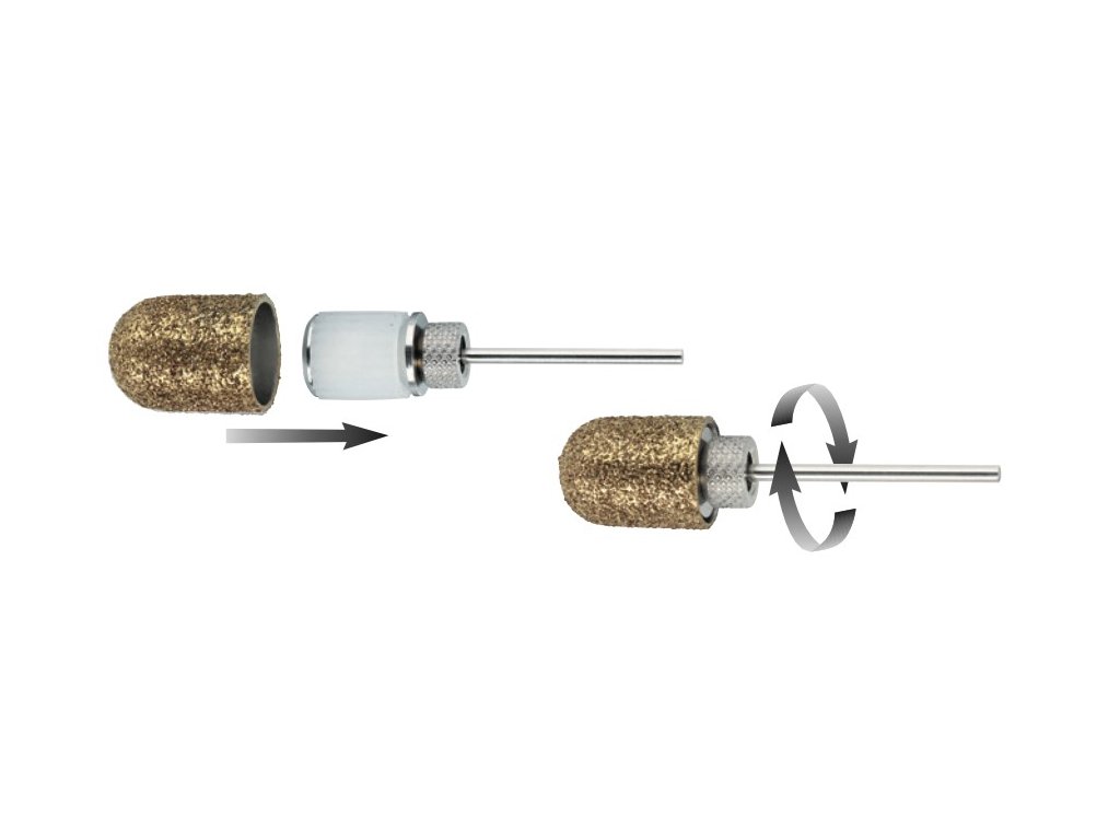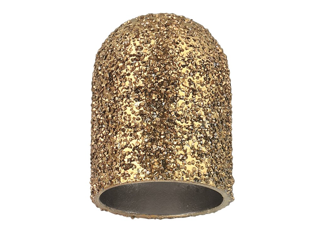 VHODNÉ PRE DIABETIKOV. Súprava 3 diamantových zlatých brúsnych klobúčikov s veľkosťou 13 mm. Set obsahuje 3 hrubosti nadstavcov – jemnú, strednú a hrubú.