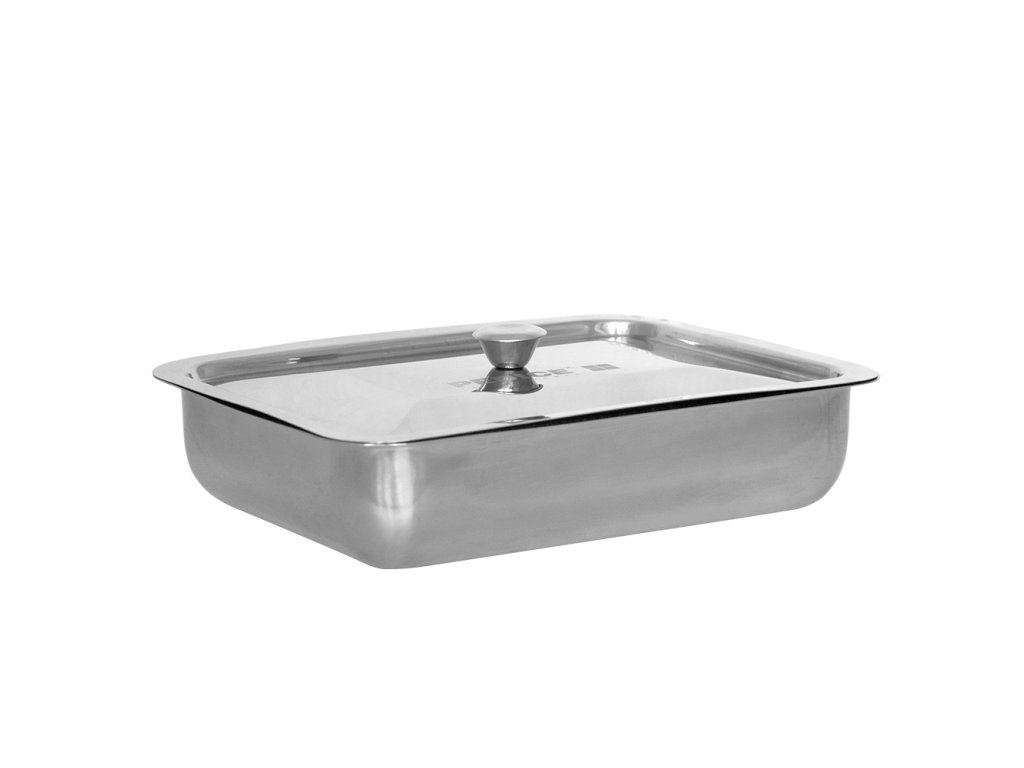 Nerezová miska s vekom vhodná na odkladanie nástrojov a pri práci so sterilnými nástrojmi napr. v lekárskych ordináciách, kozmetických salónoch, pedikérskych salónoch a iných zariadeniach. Vhodná na dezinfekciu a sterilizáciu nástrojov.