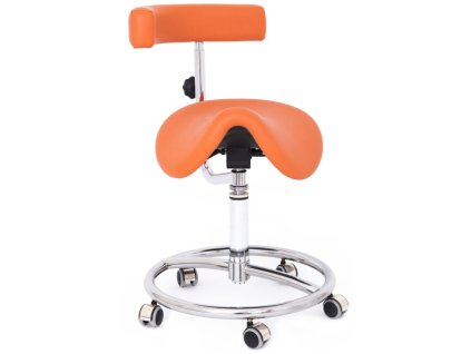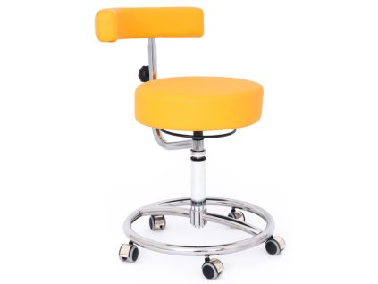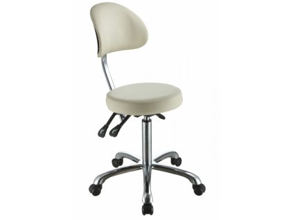 Stolička na pedikúru s okrúhlym sedákom a naklápacou opierkou chrbta.
