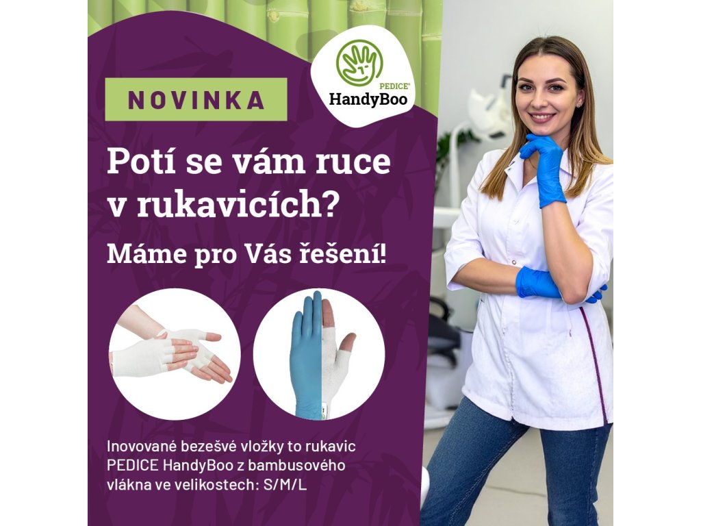 Vložky do rukavíc HANDYboo sú navrhnuté tak, aby jednoducho vyriešili problémy s potením pokožky rúk, ku ktorej dochádza pri dlhodobej práci v latexových, nitrilových alebo vinylových rukaviciach.